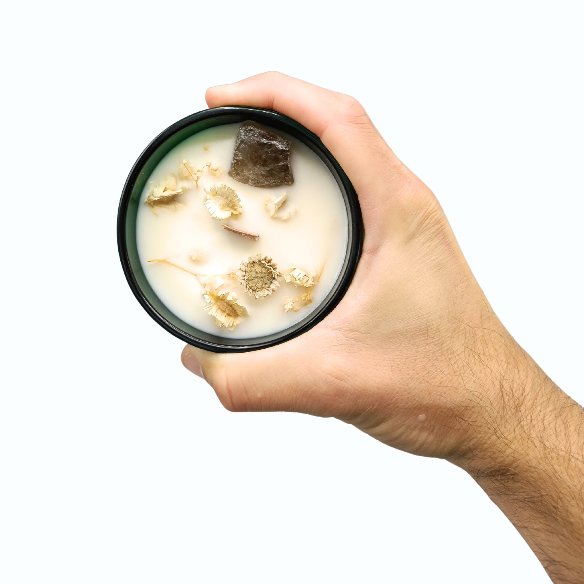💎 No interior, o quartzo de rocha potencia a energia da vela, promovendo cura, foco e serenidade – perfeito para práticas de meditação, descanso ou introspeção.